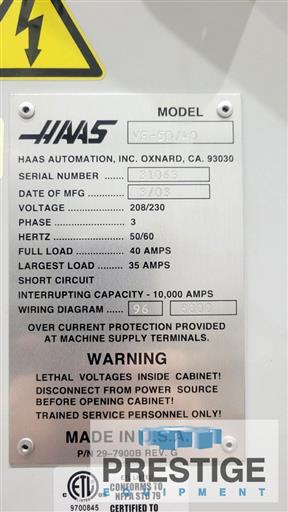 Prestige Equipment is the world's leading provider of Haas VF-5 CNC Vertical Machining Center & machine tools & fabricating equipment. Take a look at our wide selection of new and used CNC Vertical Machining Centers (VMC) for sale.