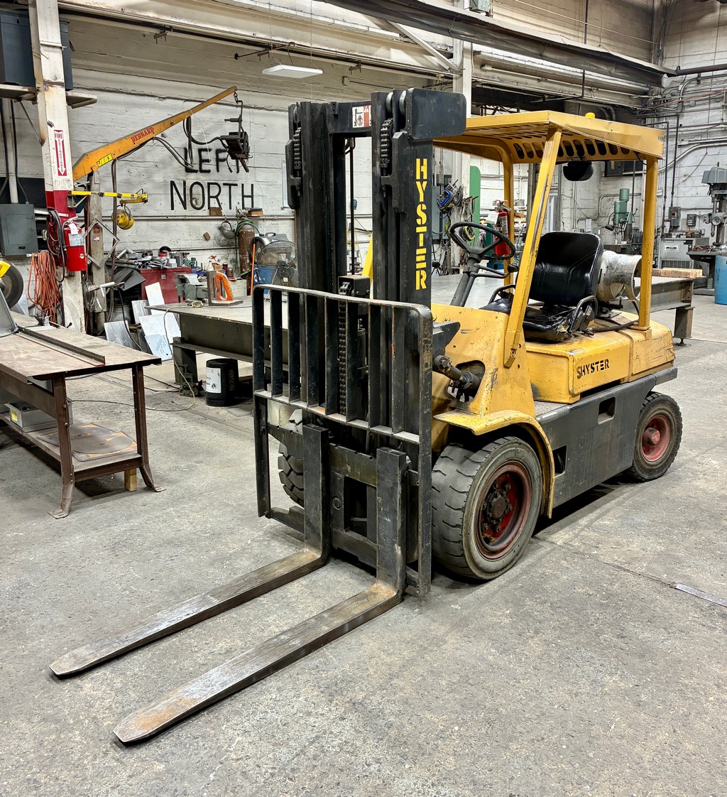 • 6,000lb. Hyster H60JS Propane Forklift, 177” Reach, 48” Forks, Hard Tires, S/N FG03D02641E