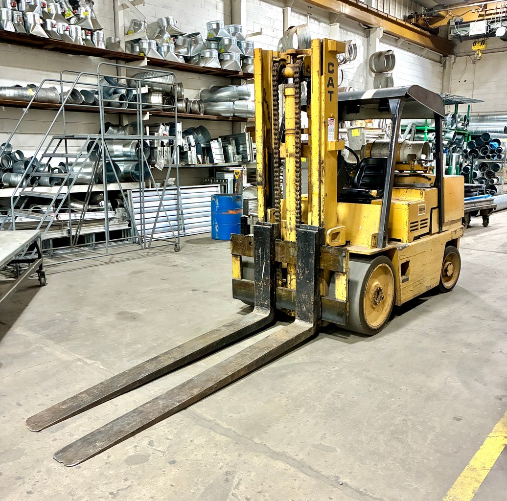 • 15,000lb. Caterpillar T150D Propane Forklift, 111’’ Reach, 84” Forks, Hard Tires, S/N 5MB00470