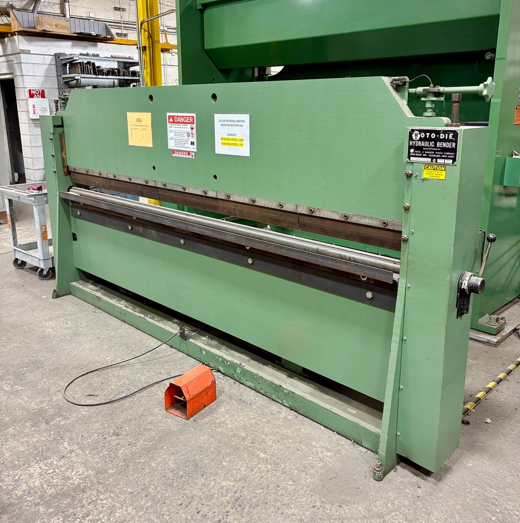 • 10’ x 16ga Roto-Die #10 Hydraulic Brake, 3” Stroke, Rotating Bottom Die, 20-50 SPM, 7.5HP Hydraulics, S/N 80147