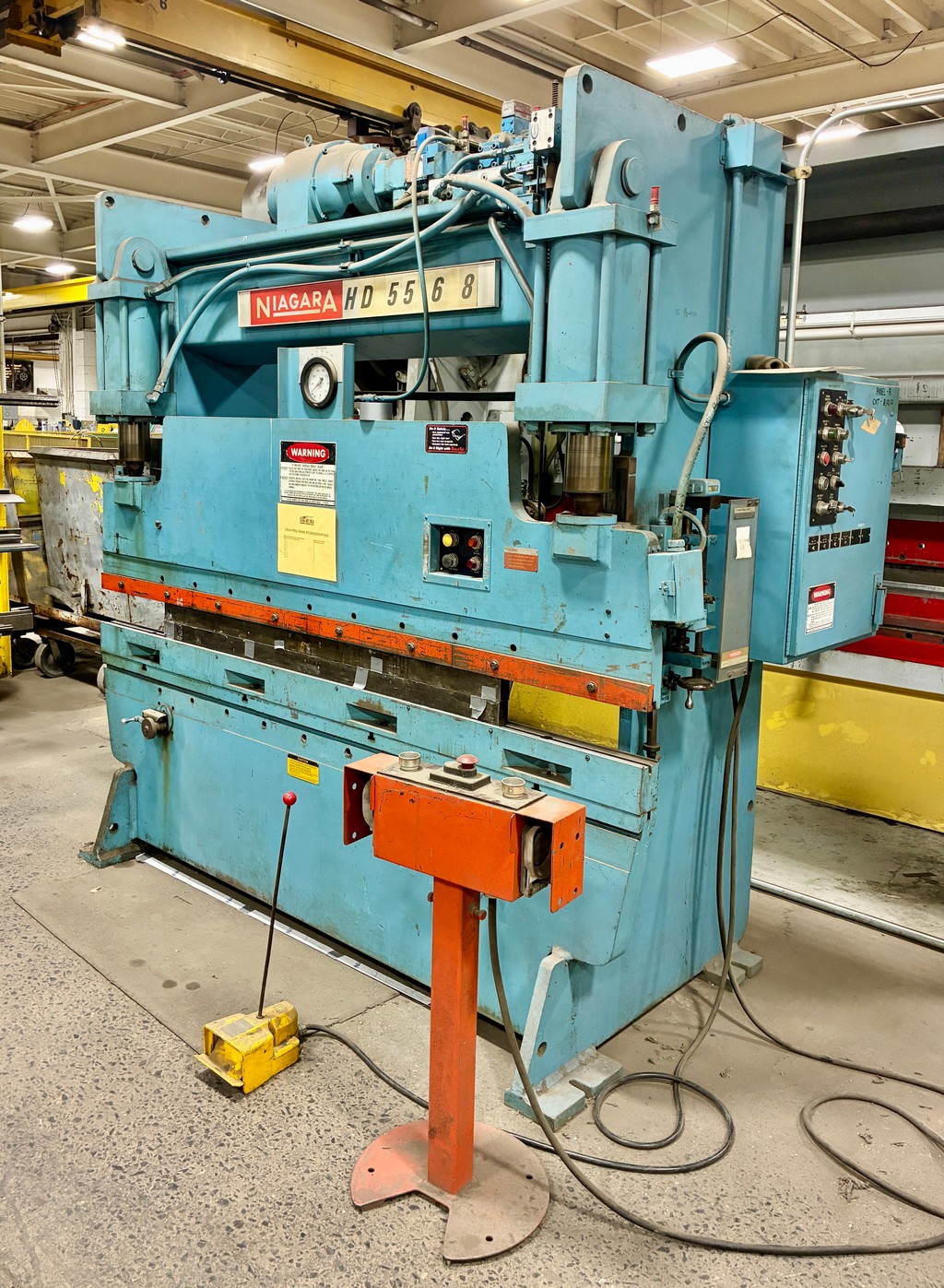 • 55 Ton x 8’ Niagara Hd-55-6-8 Hydraulic Press Brake, 78” Between Housings, Front Operated Manual Back Gauge, 8-1/2” Throat Depth, Top Mounted Hydraulics, Operators Stand, S/N 52260