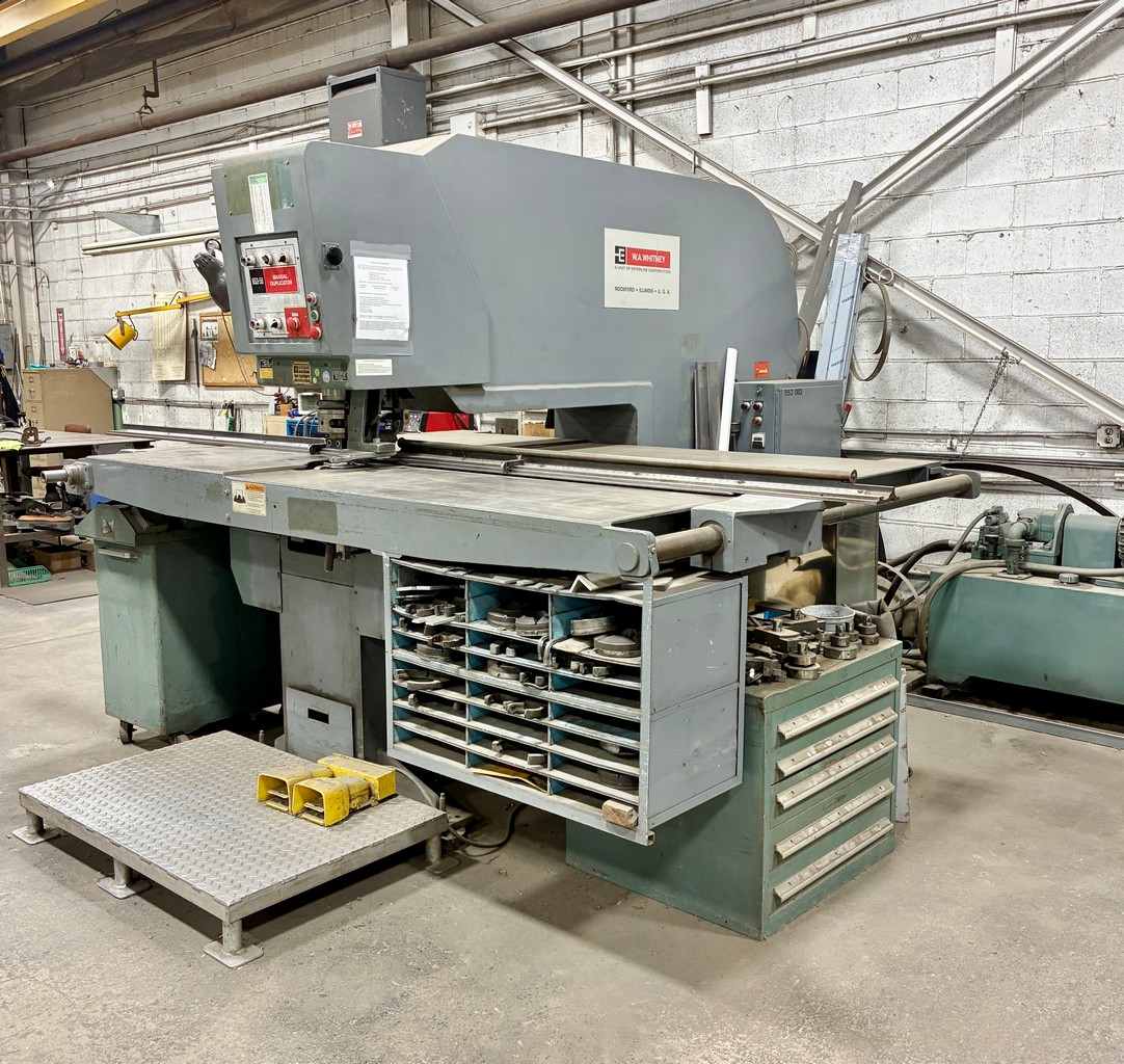 • 50 Ton W.A. Whitney 653-50 Hydraulic Single End Punch, 70” x 86” Table, Gaging, 53” Throat, 1.250” Thru ½”, Foot Switch, Assorted Dies, 20HP Hydraulics, S/N 822-049-30145