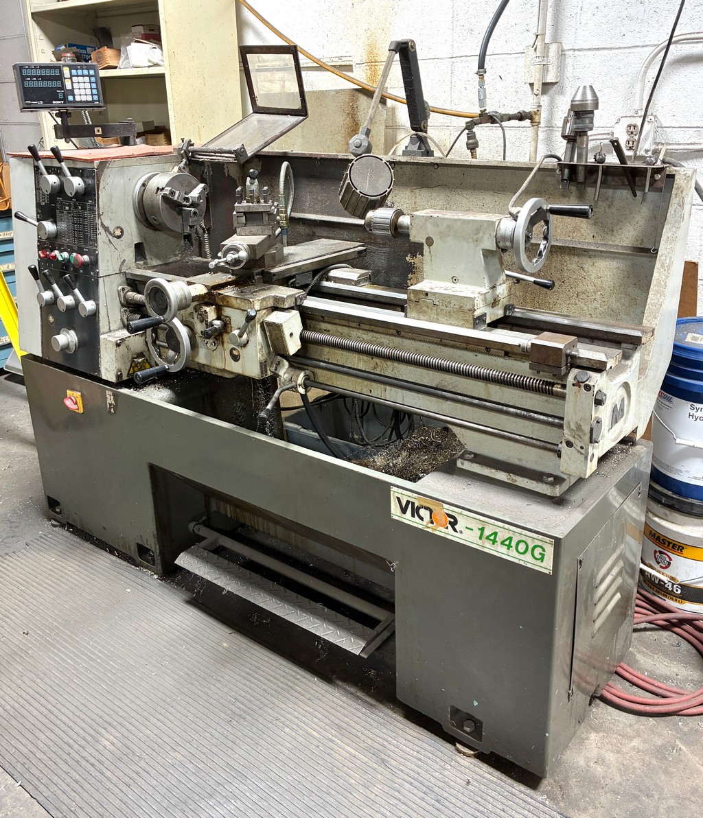 • 14” x 40” Victor 1440G Gap Bed Lathe, 21” Thru Gap, 1-9/16” Spindle Bore, Sony Lh52 Dro, Inch/MM, 16 Spindle Speed, 42-2000 Rpm, Camloc Spindle, S/N NA