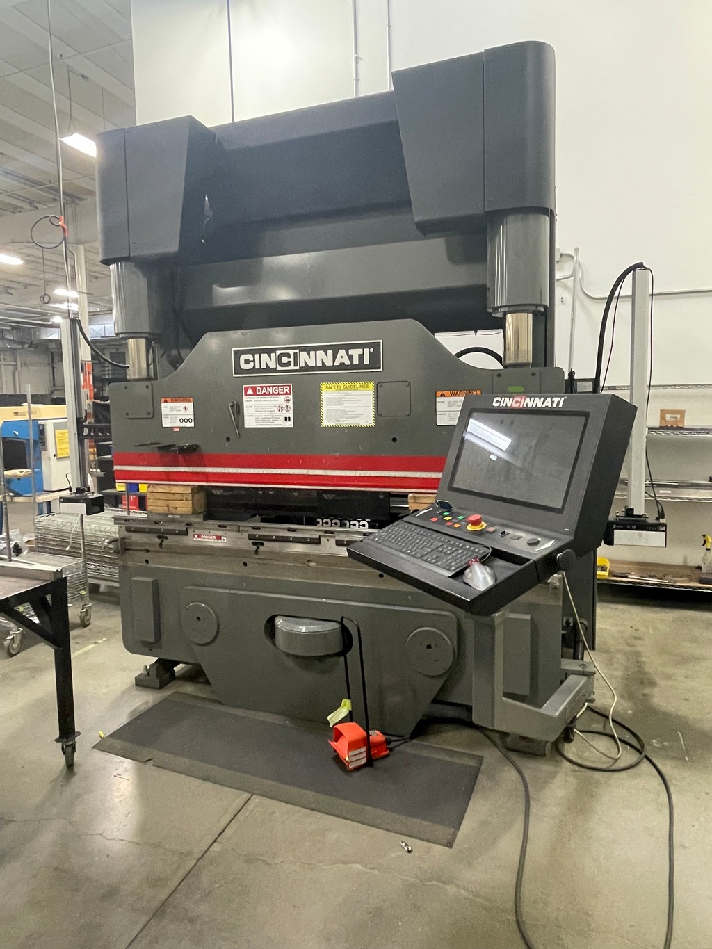 • 2018 Cincinnati 90MX6 CNC Press Brake, 90 Ton, 8’ OA, 6’6” BH, Cincinnati PC Based 7-Axis CNC Control, 14” Extended Stroke, 12” Extended Throat, Hydraulic Power Upper Clamping, Automatic Crowning, 5-Axis Back Gauge, Quick Change Nose to Accept American Style and European Style Tooling, Lazersafe Light Curtains, S/N: 56724 [2018] VIEW LOT #12