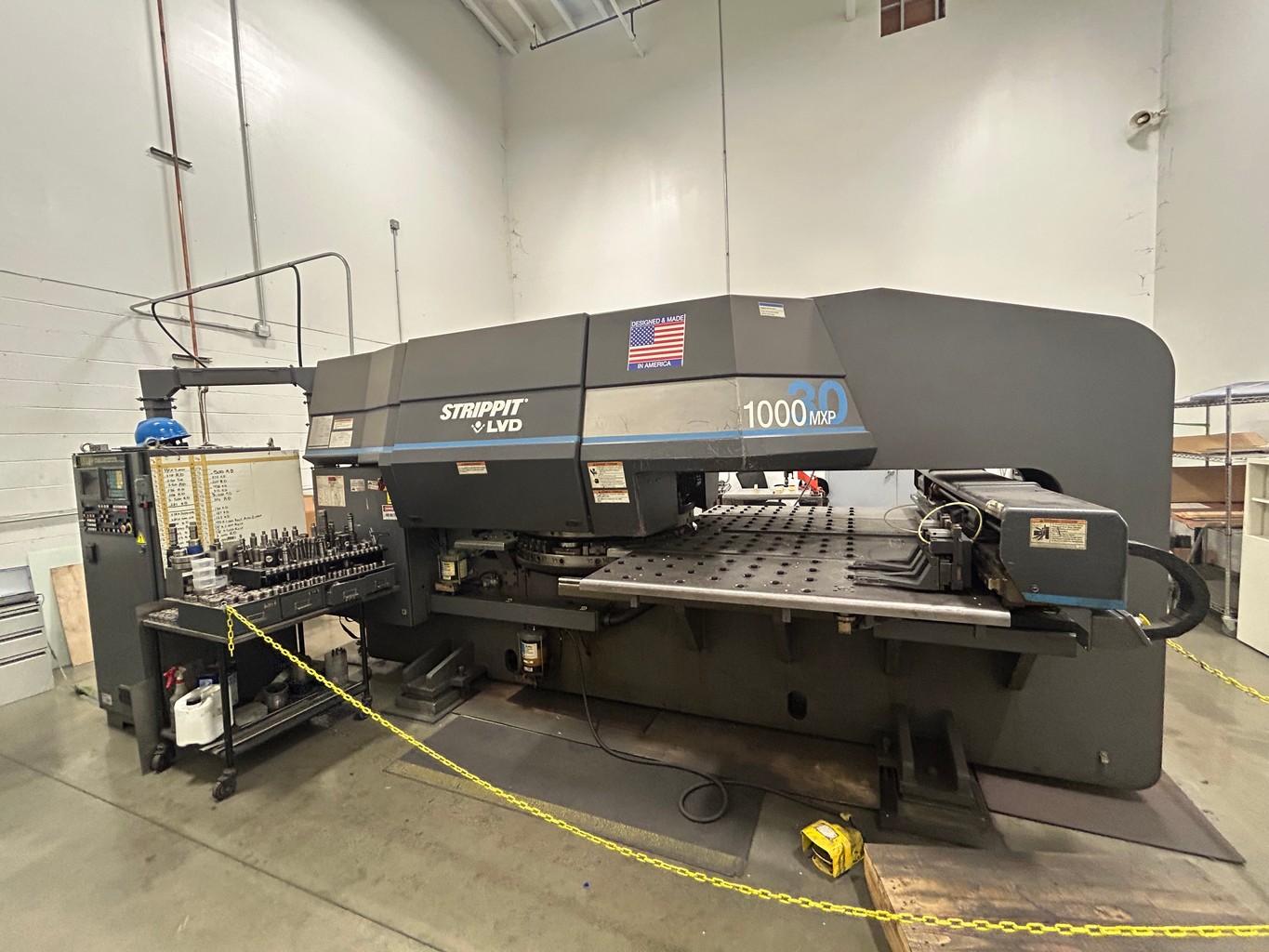 • Strippit / LVD 1000M XP/30 CNC Turret Punch, w/ GE Fanuc Controls, [2] Sheet Clamps, 89″ x 56″ Brush Table, 40-Position Turret, Large Quantity of Mate & Wilson Punch & Die Sets, S/N: 031070700630 VIEW LOT #33