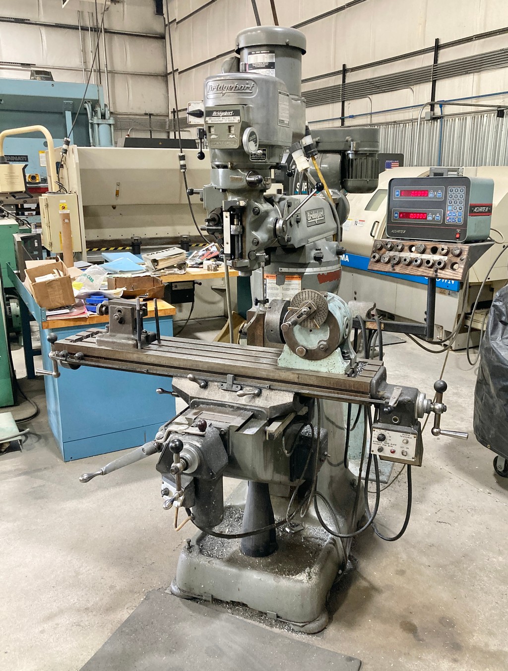 • Bridgeport Series I Mill, Acu-Rite III DRO, 48″ x 9” Power Feed Table, R8 Spindle, 60-4200 RPM, Vari-Speed Spindle RPM, 2HP, Power Feed to Knee, S/N BR-255205 VIEW LOT #99