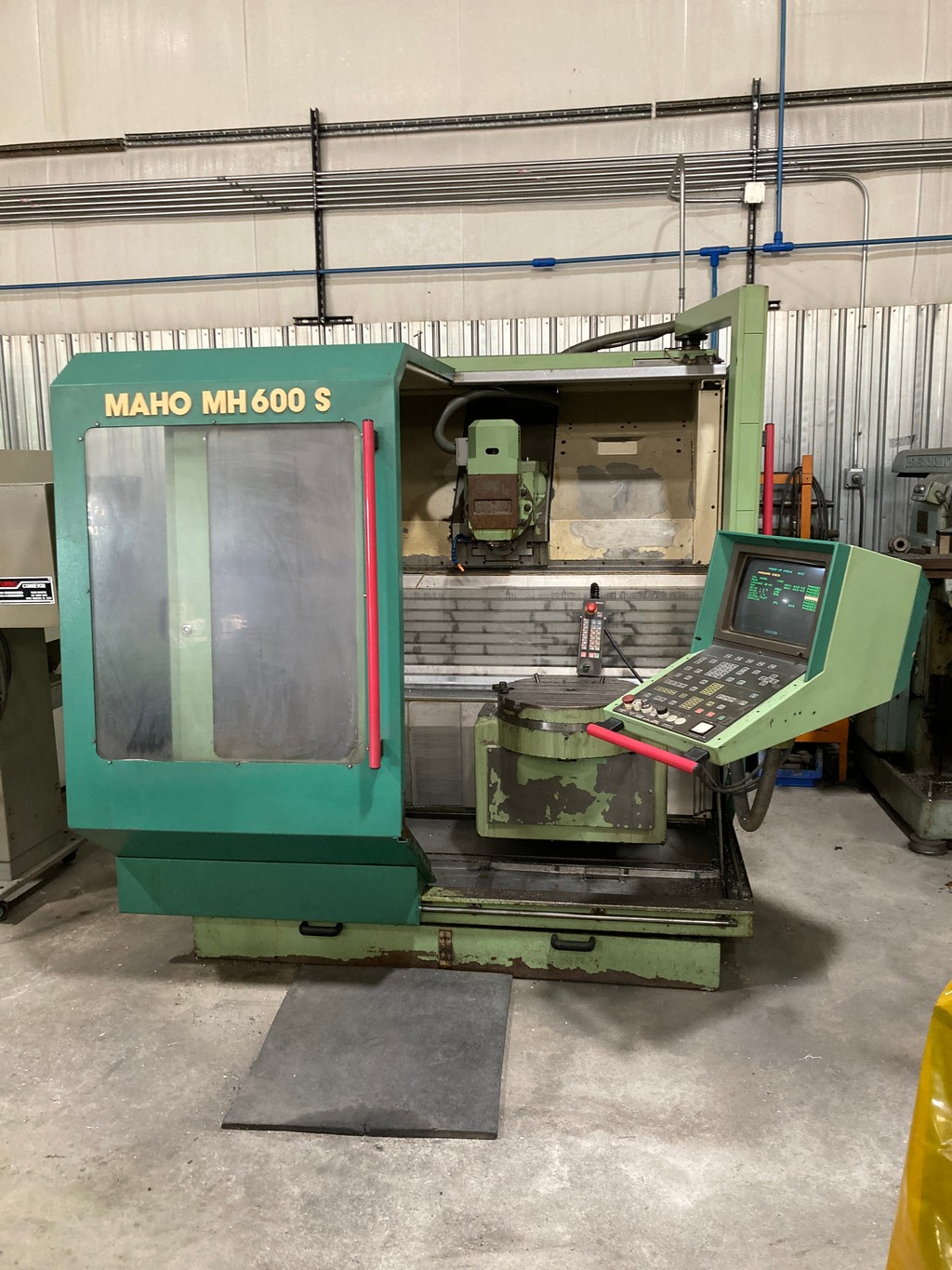 • Maho MH600S 4-Axis CNC Vertical Machining Center, Maho-Philips CNC 432 Control, 19.7” Diameter Built-In Rotary Table, Compound Slide Traverse – X-23.62”, Y-23.62”, Headstock Traverse – 19.68”, 20-6300 RPM, CAT 40 Taper (with Maho Notch), 20 ATC, S/N 65675 VIEW VIDEO / VIEW LOT #139