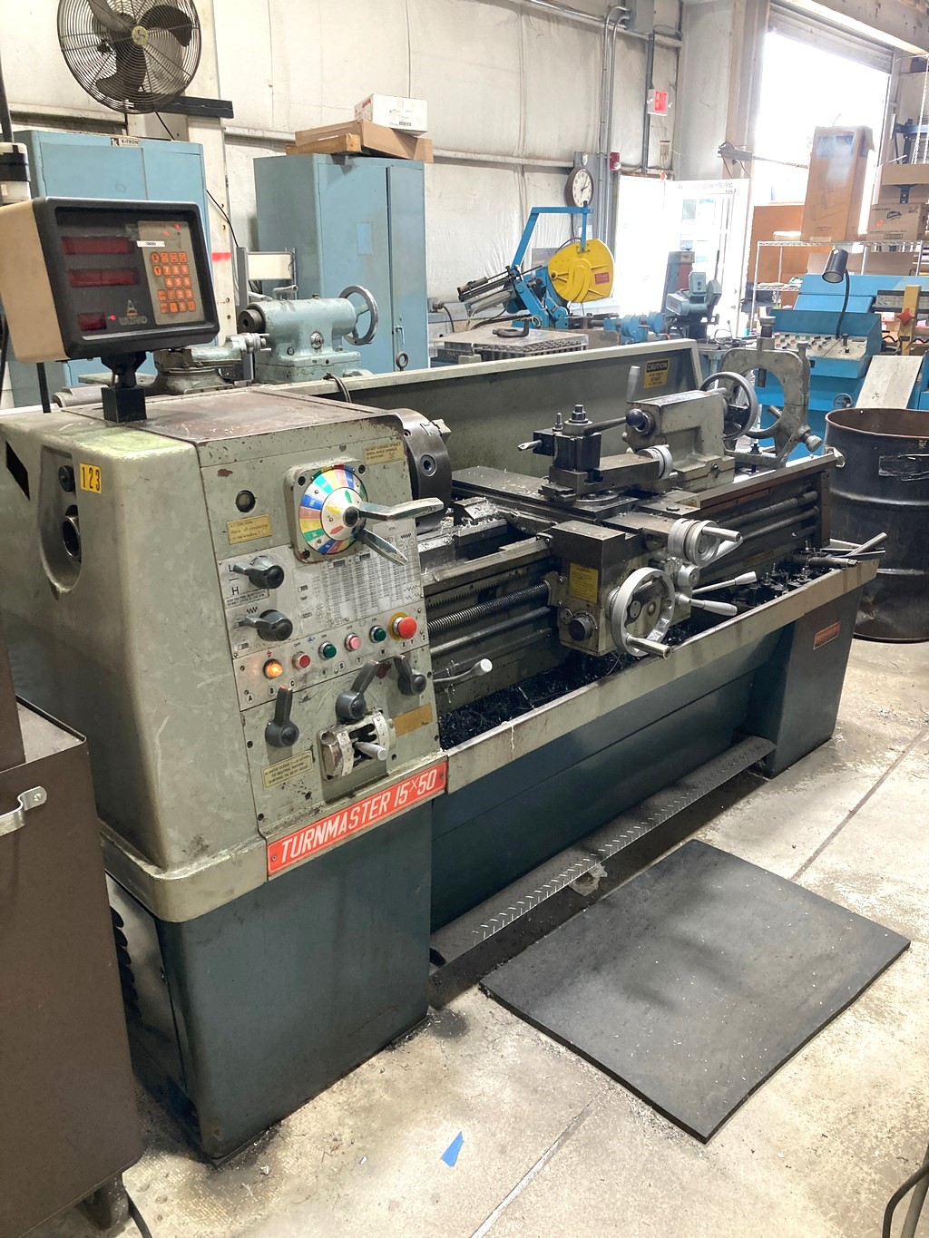 • 15/24″ x 50″ Turnmaster Gap-Bed Engine Lathe, Approx. 24” Swing In Gap, 9-3/8” Swing Over Cross-Slide, 2-3/16” Spindle Bore, 1-2000 RPM, Anilam DRO, Camloc Spindle, Inch-Metric, Taper Attachment, Camloc Spindle, Steady Rest, S/N 15586020708C VIEW LOT #115