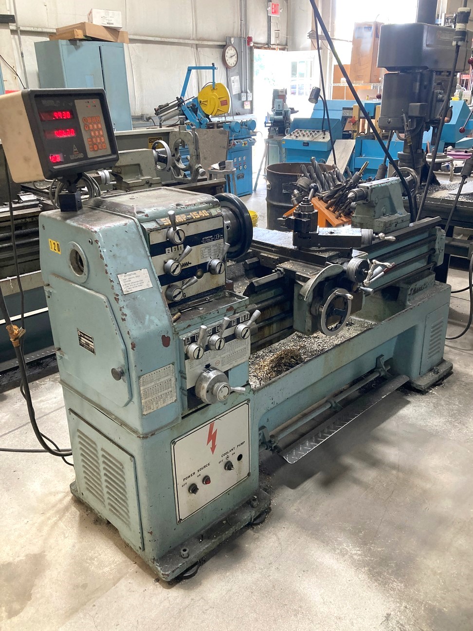 • 15″ x 40″ Sharp Model 1540 Lathe, Camloc Spindle, (6) Spindle Speeds, 83-1800 RPM, Approx. 1-1/2” Spindle Bore, Inch-Metric, Anilam Wizard DRO, S/N W10308 VIEW LOT #112