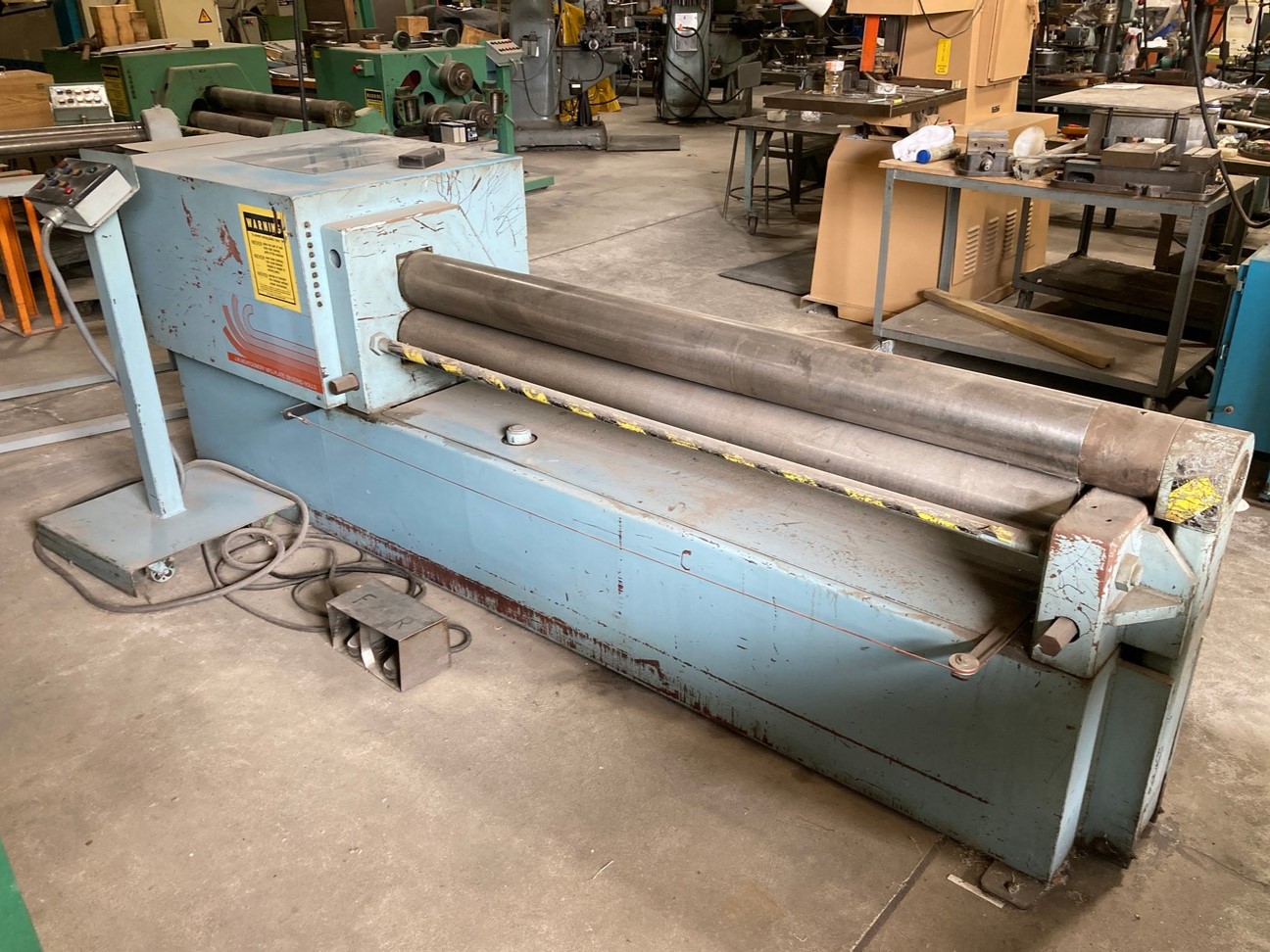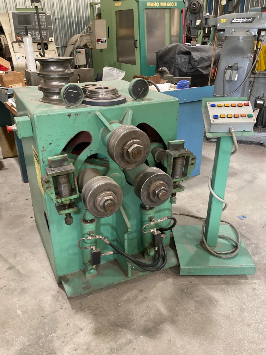 • JM Montgomery Model 4R-3610 4-Roll Plate Bending Roll, 36″ x 10GA. Capacity, Hydraulic Roll Adjustment, Hydraulic Drop End, 4″ Diameter Rolls, Pedestal Ctrl., Pedestal Control, foot Switch, 7.5 HP, S/N 03610094 VIEW VIDEO / VIEW LOT #148