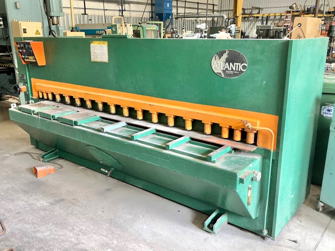 • Atlantic HDE-25-10 Hydraulic Shear, 10’ x ¼” Capacity, 29-1/2” FOPBG, (2) Front Supports, 72” Squaring Arm, Spare Set of Blades, 15 HP Motor, S/N 800761 VIEW VIDEO / VIEW LOT #150