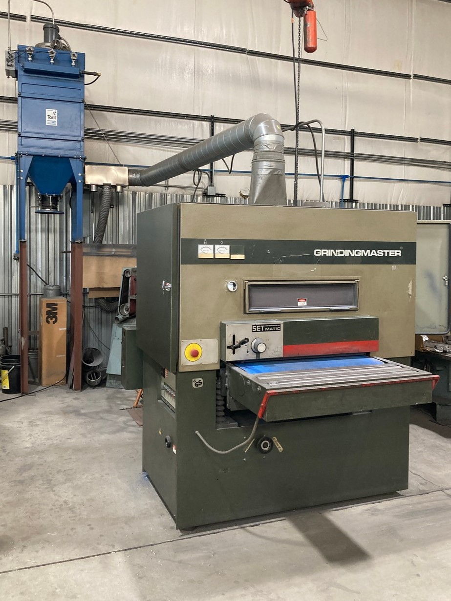 • 36” Grinding Master MCSB/B290O Dual Head Belt Grinder, Belt and Scotchbrite Wheel, Setmatic, Vari-Speed Conveyor infeed, Fine Adjustment on Heads, Oscillation and Tracking, Front Pinch Rolls, S/N K040815 VIEW VIDEO / VIEW LOT #110