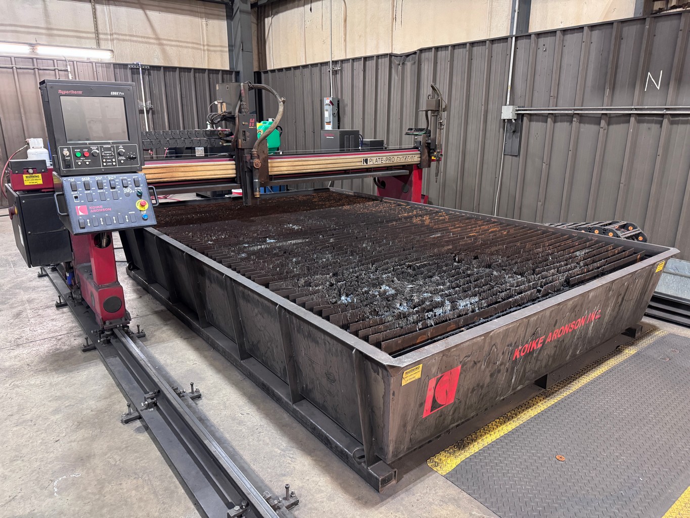 • Koike Plate-Pro Extreme, 8’ x 12’ Cutting Area, Hypertherm Edge-Pro CNC Ctrl., Hypertherm HPR260XD, Floor Mounted Power Track, 8’ x 12’ Water Cutting Table, S/N: 0416051750 VIEW LOT #242