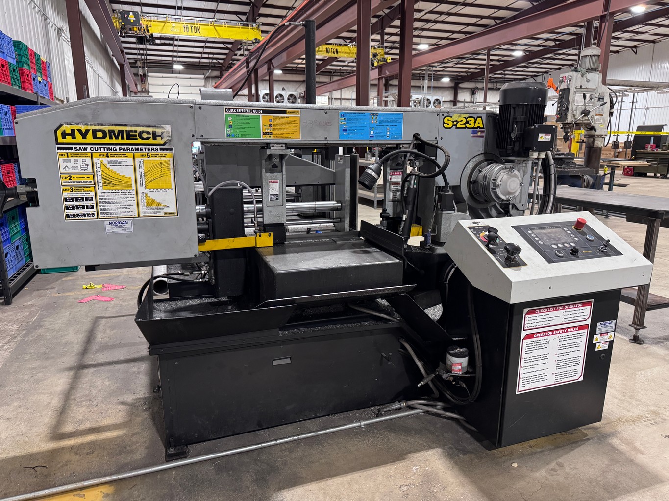 • 2023 Hyd-Mech S23A Horizontal Band Saw, Evolution TS50 PLC Ctrl., 16” x 20” Capacity, 16” x 14” at 45 Degrees,1.25” Blade, 8.8 HP Blade Drive, 75-350 SFM, 28.5” Ball Screw Shuttle Feed, Integrated Roller Feed Table, Full Capacity Hydraulic Vise, S/N: 10000000000429 VIEW LOT #243