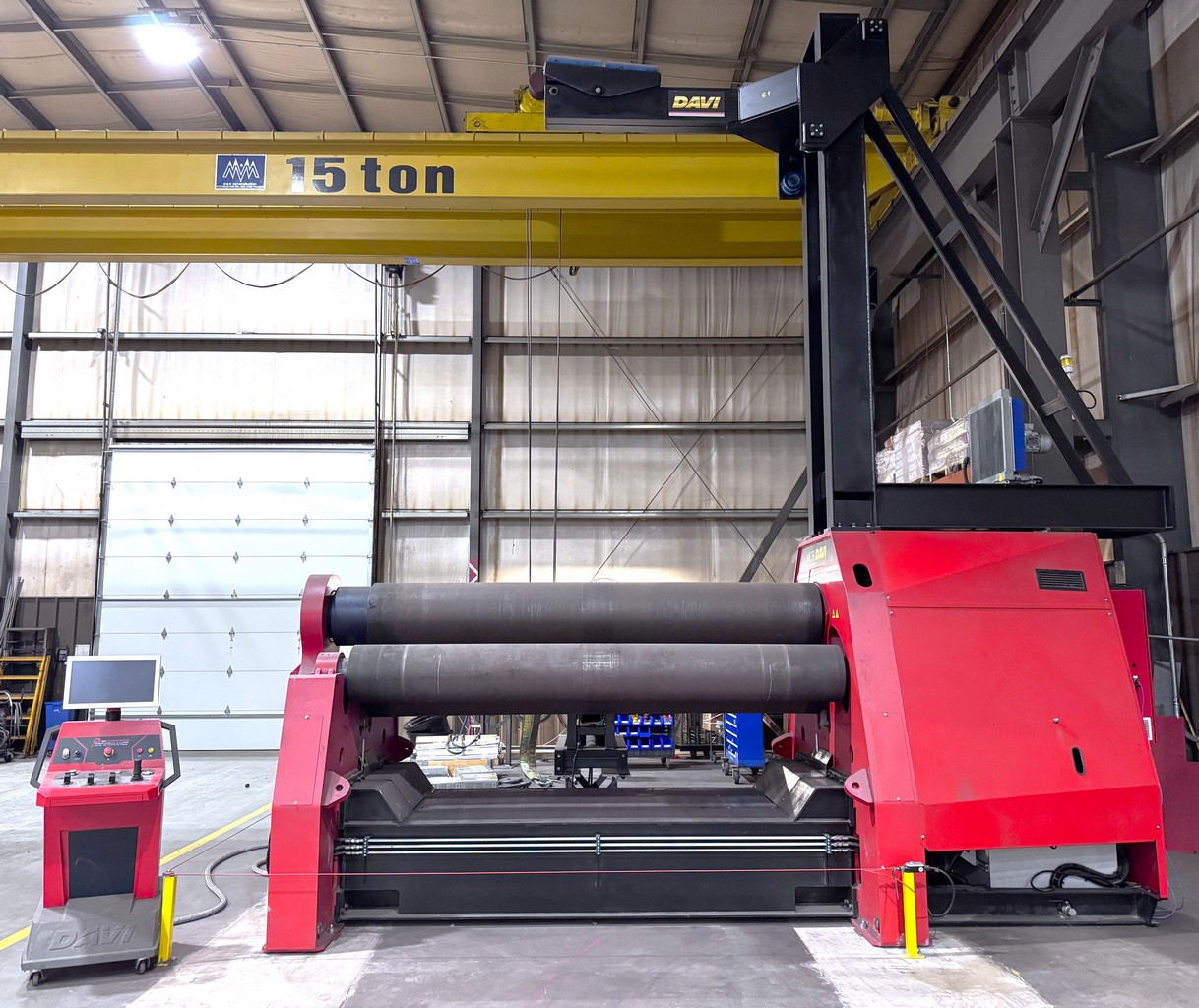 • 2023 Davi MCB 130 4-Roll Plate Roll, 10’ Roll Length, 18.2” Top Roll, 16.6” Bottom Roll, 14.2” Side Rolls, 72 HP Power, High Resistance, Heat Treated Rolls, iRoll Performance CNC Control, Overhead Plate Support, Side Support, 25’ Power In-Feed Rollers, Mfg. Date: 07/2023, S/N: 22340181 [Sold to Johnson Controls in 2024 and Never Used.] VIEW LOT #423