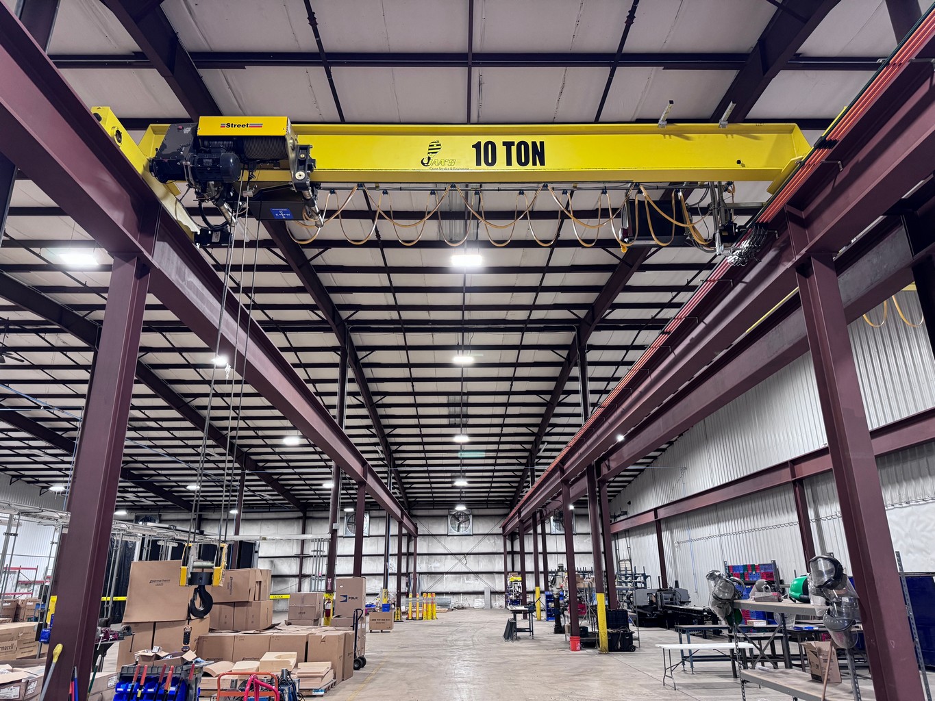 • 10 Ton x 20’ Span Street, Single Girder, 21’ Lift, Radio Ctrl., 190’ Crane Rail System