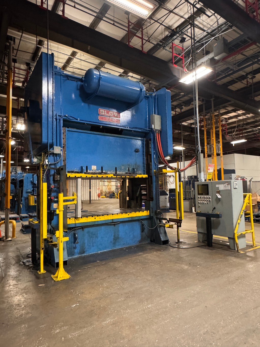 • Blow SC2-300-102-48 Straight-Side Press, 300 Ton, 10” Stroke, 30.5” Shut Height Over Bolster, 18” Slide Adjustment, 102” x 48” Bed Area, 20-40 SPM, Cieco Automator II Press Control, S/N: SDG-300-278-89
