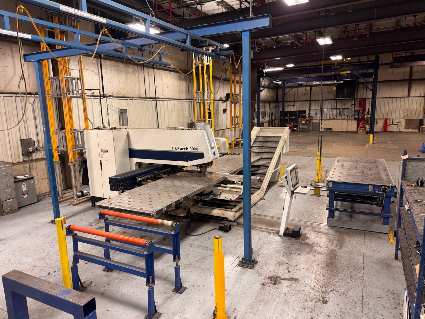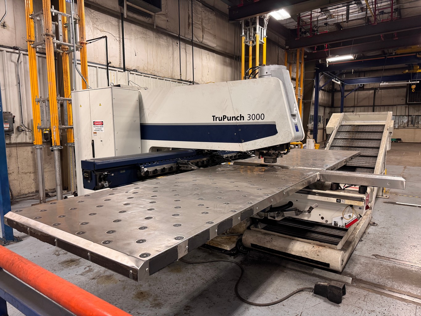 • Trumpf Tru-Punch 3000 Servo Electric Punch, Bosch CNC Ctrl., 22 Ton, 50” x 100” Travel, 3” Max. Punch Dia., 18-Station Linear Tool Changer, 136 Deg. Punch Head Rotation, Tooling and Cartridges, LNS Turbo HB Chip Conveyor, 120” x 48” Roller Ball Type Extension Table on Casters, S/N: A0035A0218, [2013]