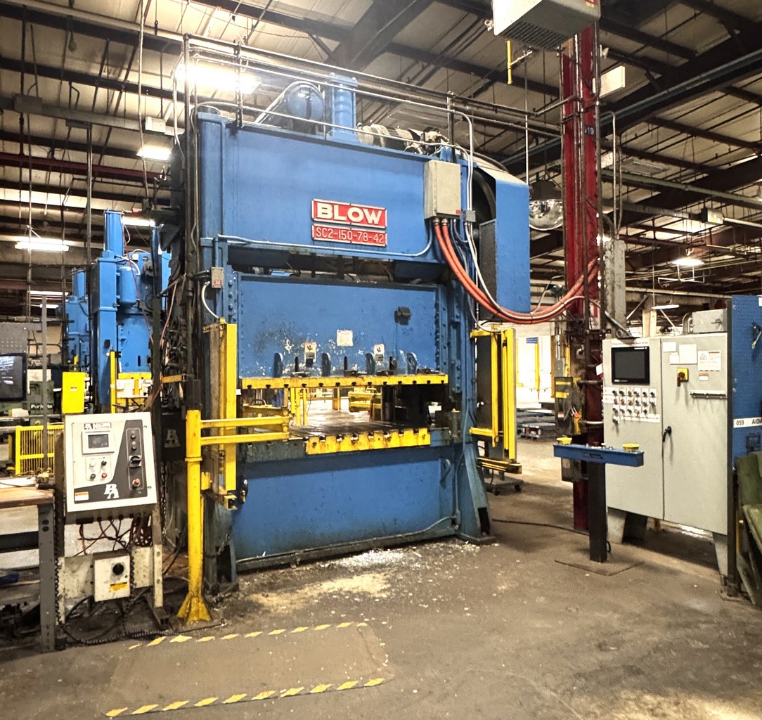• Blow SC2-150-78-42 Straight-Side Press, 150 Ton, 4” Stroke, 16” Shut Height Over Bolster, 6” Slide Adjustment, 78” x 42” Bed Area, 50-90 SPM, Cieco Automator II Press Control, S/N: SDF-150-279-89