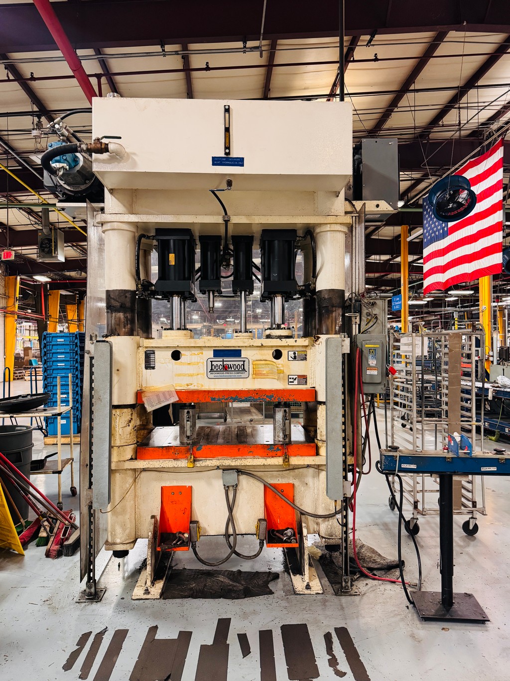 • Beckwood 250 Ton 4-Post Hydraulic Press, 250 Ton, 48” x 32” Bed Area, 18” Stroke (Approx.), S/N: 22428